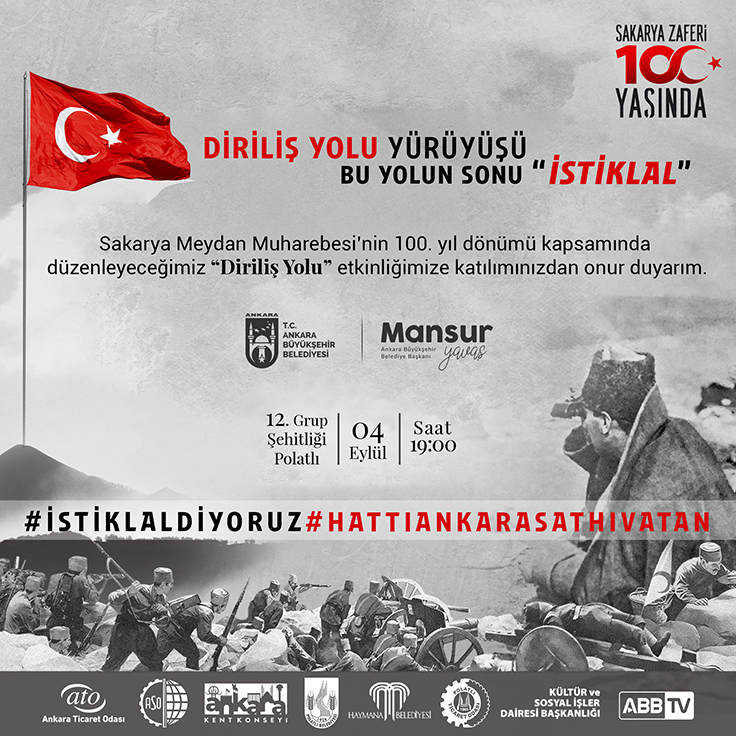 İşte Türk ordusunun, Batılı devletlerin güdümündeki Yunan ordusunu hezimete uğrattığı Sakarya Meydan Muharebesi’nin 100. yılında başkentli bir kez daha son kale olan Ankara’da “Diriliş Yürüyüşü” düzenleyerek, 100 yıl önce “İstiklal” diye haykıran atalarını selamlayacak.