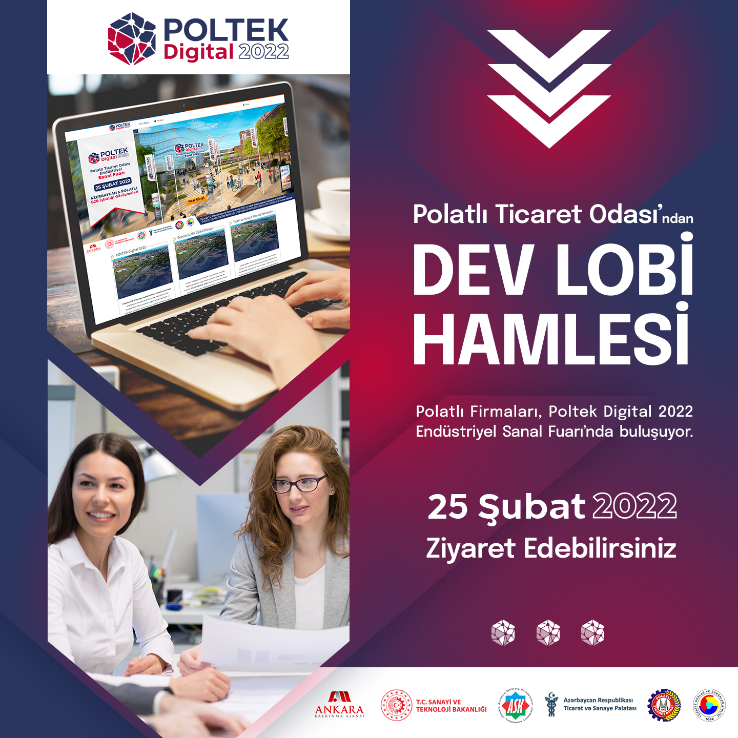 Ticaret Bakanlığı'nın onaylı globalpiyasa.com'un sistem altyapısı ile hazırlanan Polatlı Teknoloji Fuarı (POLTEK) ile Polatlı Ticaret Odası üyeleri ihracat kapısını aralayacak. Azerbaycan Ticaret ve Sanayi Odası ile Azerbaycan Cumhuriyeti Ulusal Girişimciler (İşverenler) Örgütleri Konfederasyonu üyelerinin de yer alacağı sanal fuar organizasyonu 1 ay süre ile açık ve kalacak katılımcılar platforma ücretsiz olarak giriş sağlayacak. Fuara katılan firmalar 1 yıl boyunca da sistem üzerinden ürünlerini pazarlama imkanına kavuşacak. Ankara Kalkınma Ajansı mali destek projesi kapsamında hayata geçirilen proje ile üye firmalar hiç maliyet harcamadan fuara katılmış olacak. 25.02.2022 Bugün gerçekleştirilecek fuarın resmi açılışına katılmak isteyen Polatlı Ticaret Odası üyeleri için katılım bilgileri şu şekildedir : https://us02web.zoom.us/j/4493710371?pwd=S3MvVEJ0aS9DdnlOUzhTOVNXOTl3UT09