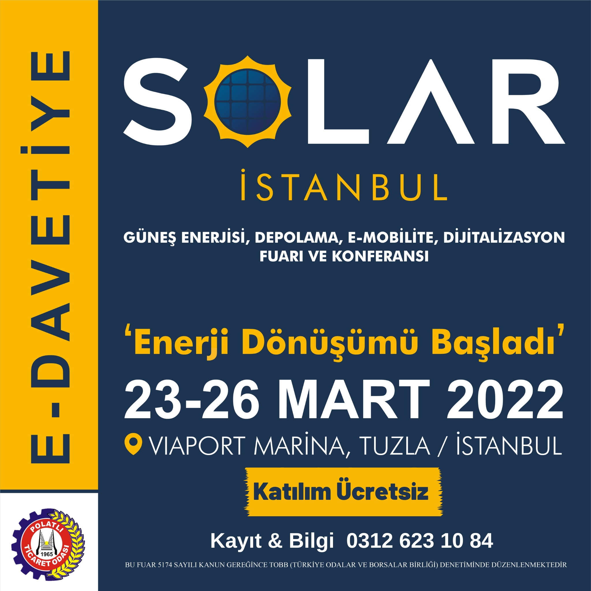 Fuar ziyaretinin tüm üyelerinin katılımına açık olduğunu beyan eden Polatlı Ticaret Odası Yönetim Kurulu Başkanı Ulvi Sakarya : " Sürdürülebilirlik ve Enerji Dönüşümü’ temasıyla 23-26 Mart’ta Tuzla Viaport Marina’da düzenlenecek Solar İstanbul'da güneş enerjisindeki son teknolojiler sergilenecek. Fuar, güneş paneli üreticilerinden elektrik depolama çözümlerine, elektrikli araba, otobüs ve drone'lardan enerji verimliliğine, akıllı finansman yöntemlerinden siber güvenlik sistemlerine kadar çok çeşitli katılımcı profillerinden öncü şirketleri aynı çatı altında toplayacak. Dolayısıyla üyelerimiz için oldukça verimli bir fuar ziyareti olacağı düşüncesindeyiz. Fuara katılmak isteyen tüm sektörlerimizin mensuplarını odamızla iletişime geçmeye davet ediyorum . " dedi.