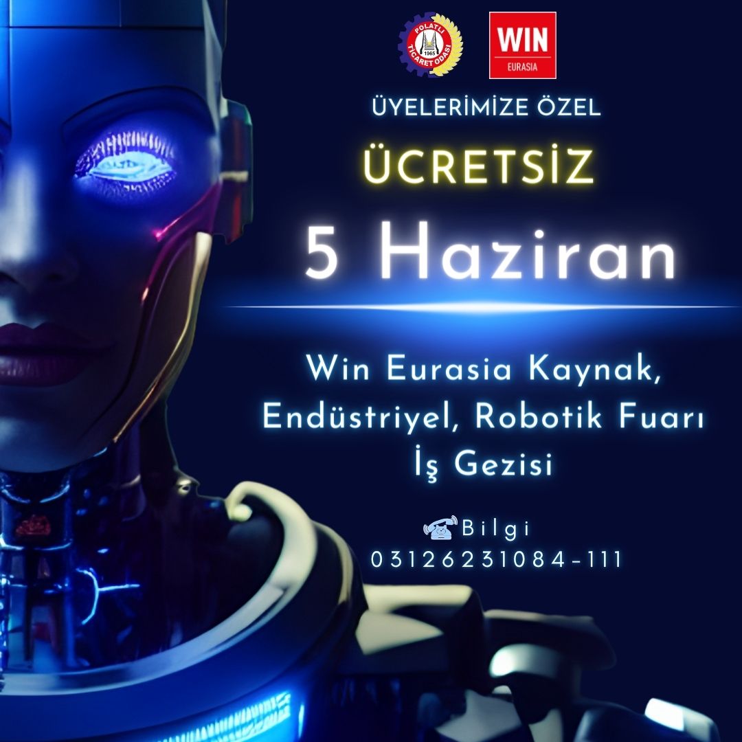 5 Haziran 2024 Çarşamba günü gerçekleşecek Win Eurasia Kaynak, Endüstriyel, Robotik Fuarına odamız organizasyonu ile üyelerimize özel düzenleyeceğimiz iş gezisine ücretsiz şekilde katılım sağlayabilirsiniz.